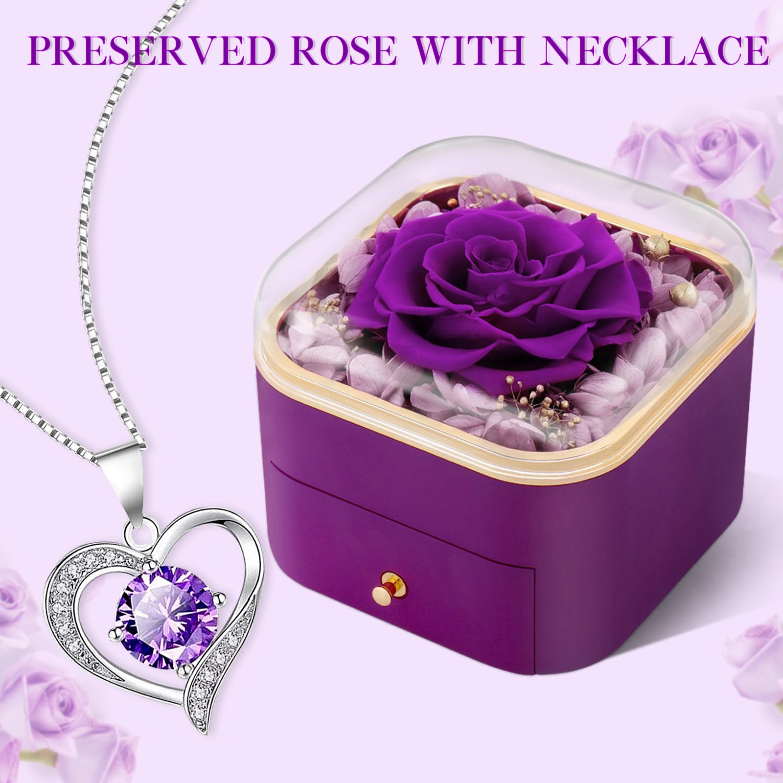 Birthday Gifts for Women Mom Preserved Real Rose with Necklace