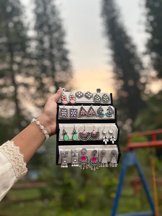 16 Colorful Stud Earrings With Folding Jewellery Box
